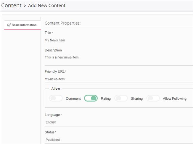 - Published: to publish and make the newly created content available to all users.