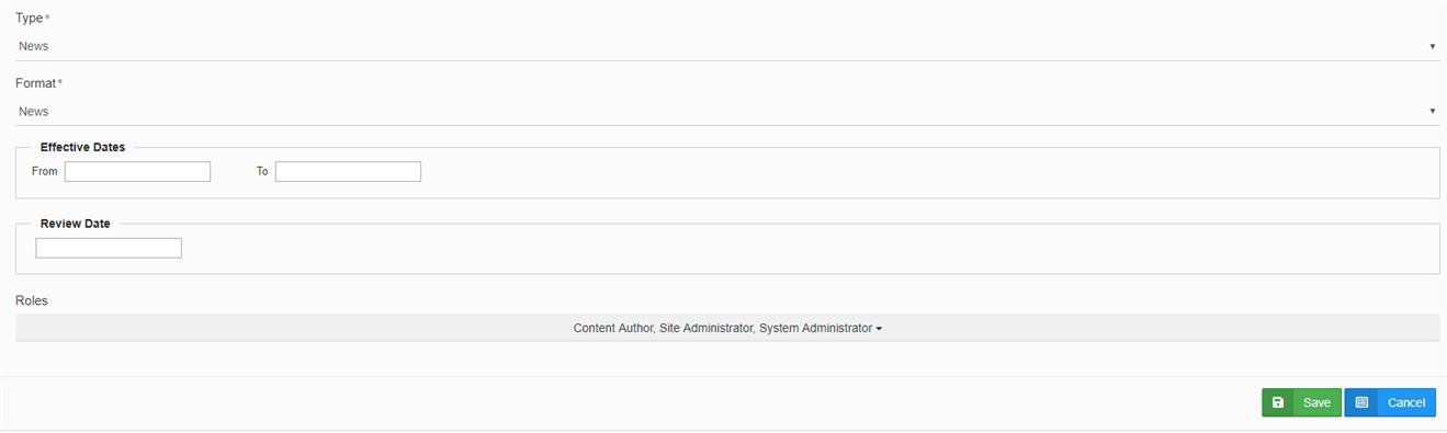 - Since news are typically good for a period of time, in the Effective Dates area, enter dates in the To and From fields.